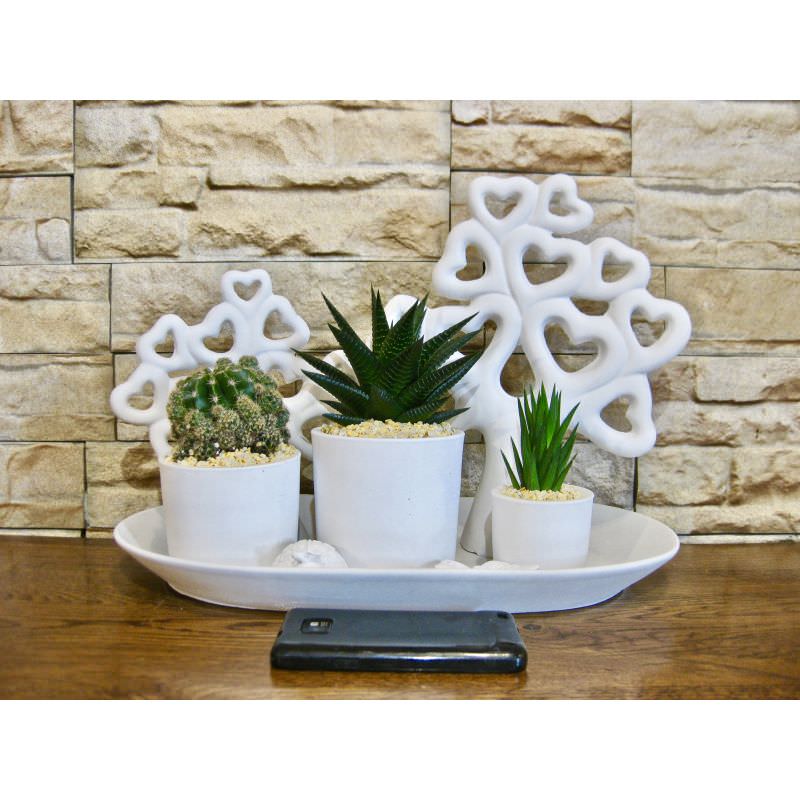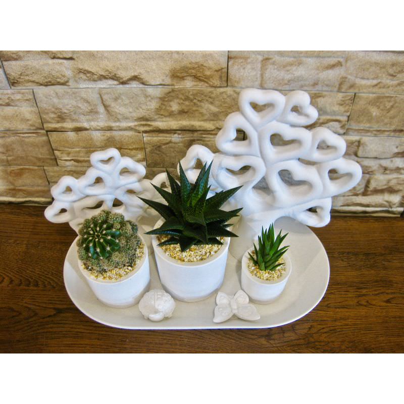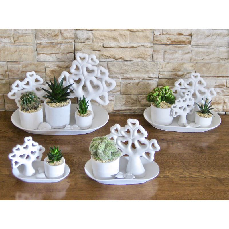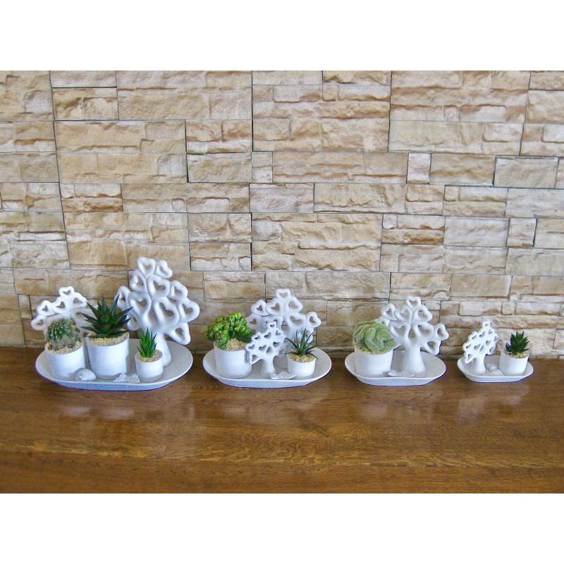 Serie 5 alberi della vita basi quadrate e rettangolari con pianta grassa.