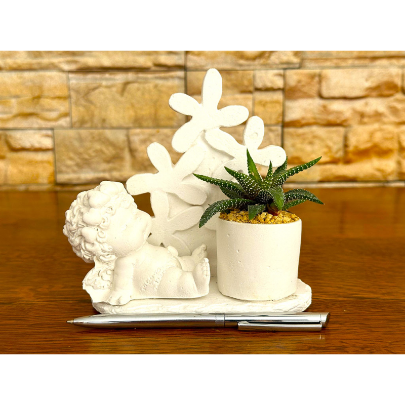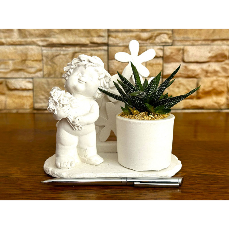 Serie da 12 angeli basi quadrate e rettangolari di grandezze diverse con pianta grassa.