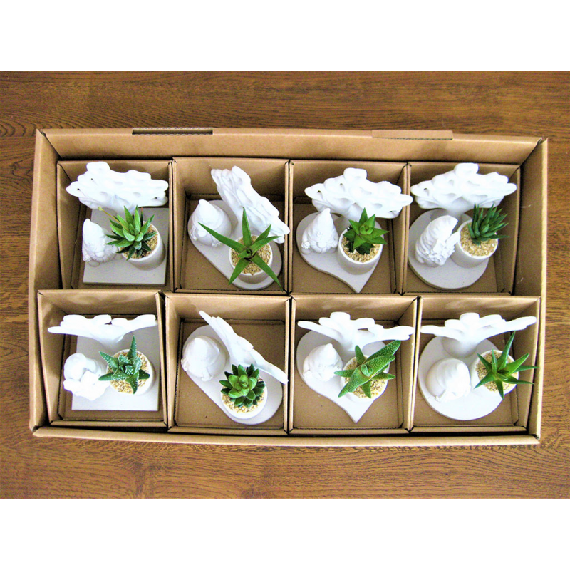 Serie angeli da 10 pezzi, forme e grandezze diverse con pianta grassa.
