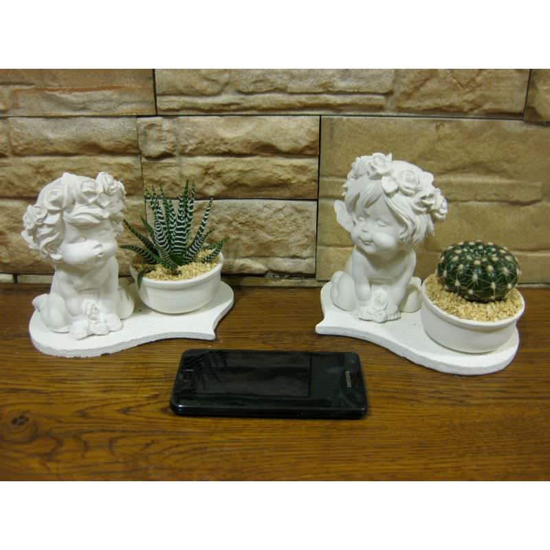 La serie da 10 angeli con le basi a forma di cuori è composta da 4 misure ed è compresa di piante grasse: