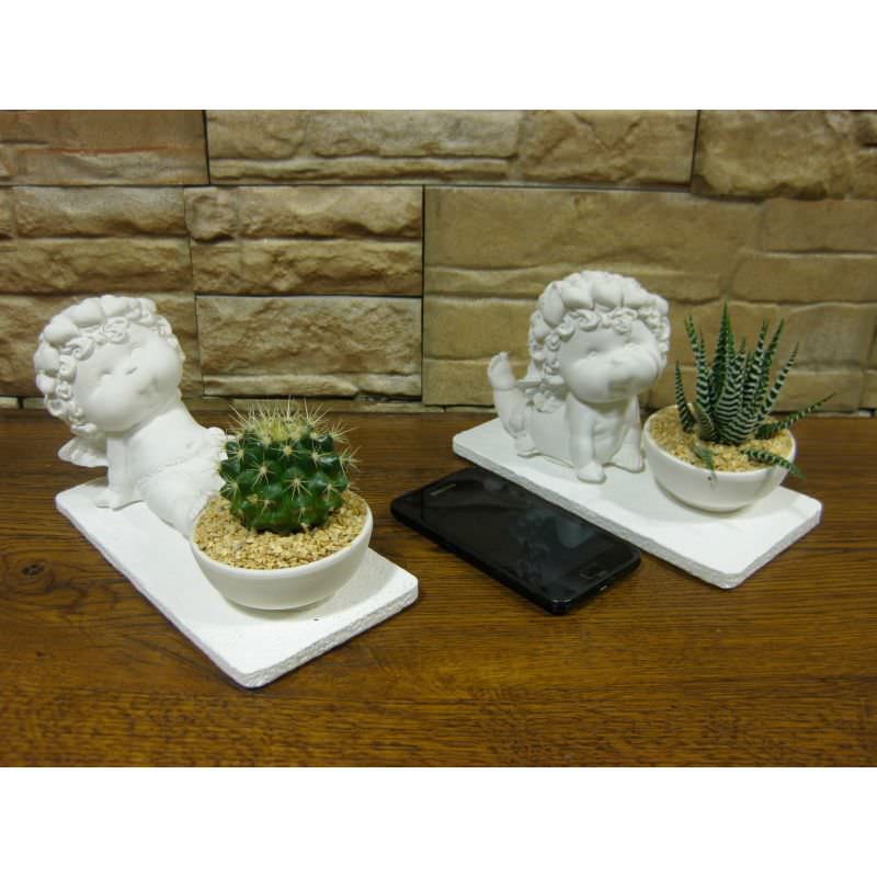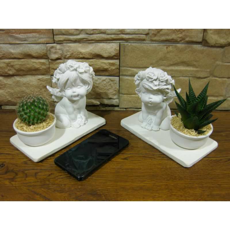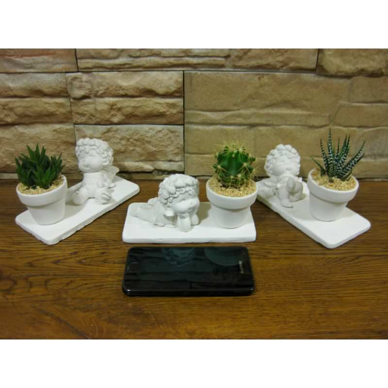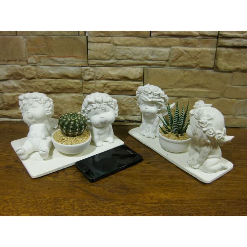 La serie da 12 angeli con le basi quadrate e rettangolari è composta da 3 misure ed è compresa di piante grasse: