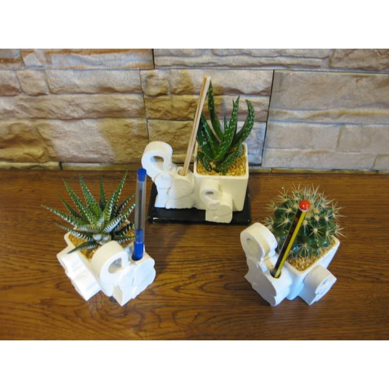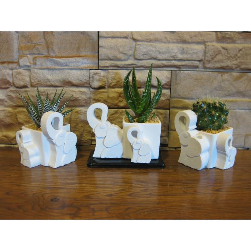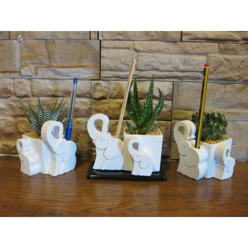 Elefanti porta penne con pianta grassa forme miste.