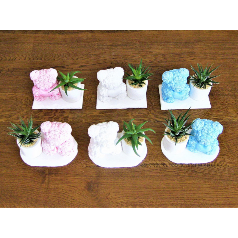 Serie da 6 orsi teddy colorati, 2 rosa, 2 azzurri, 2 bianchi.