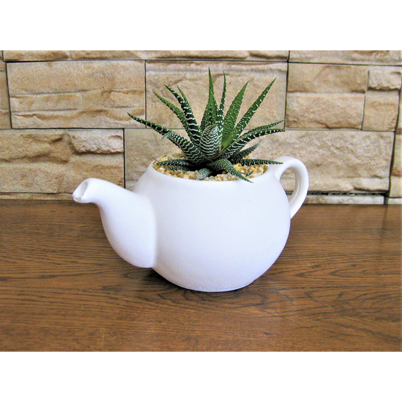 Teiera media con pianta grassa.