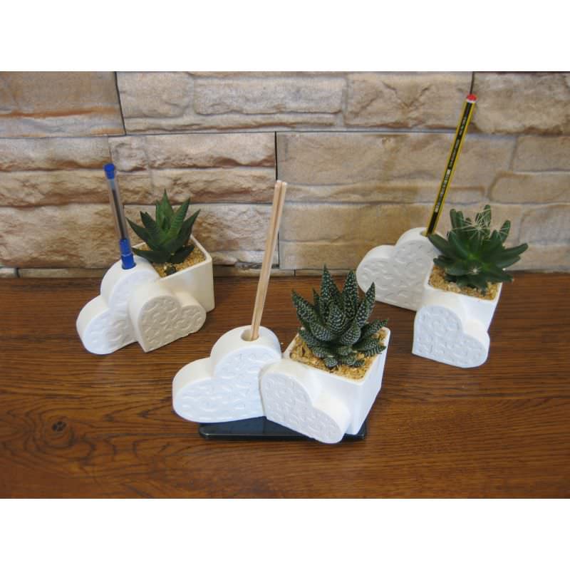 Cuoricini medi porta penne con all'interno una pianta grassa.