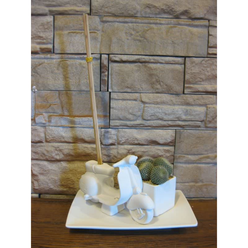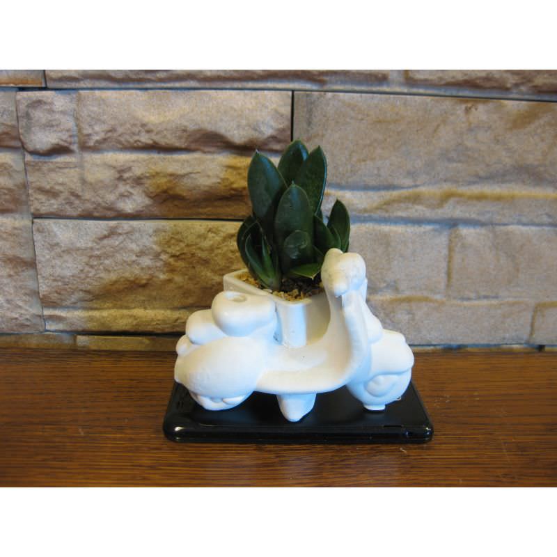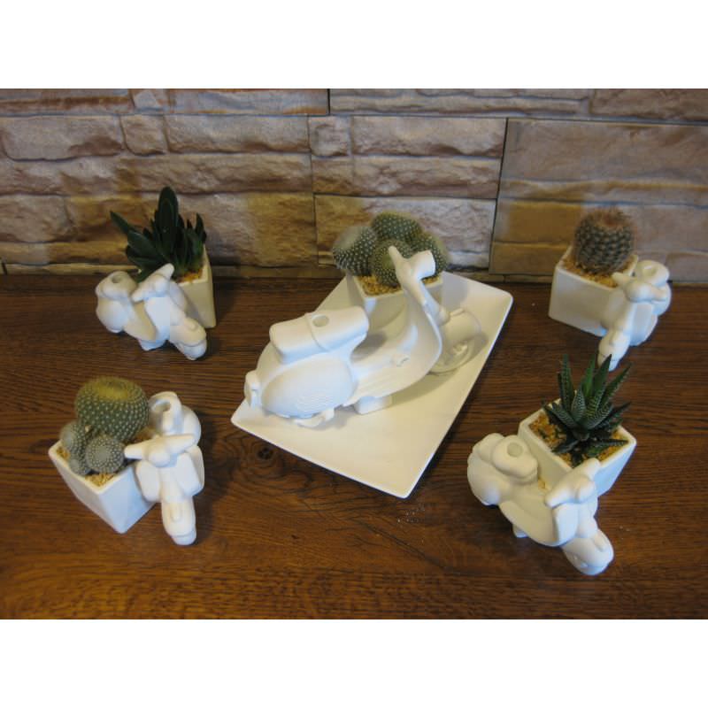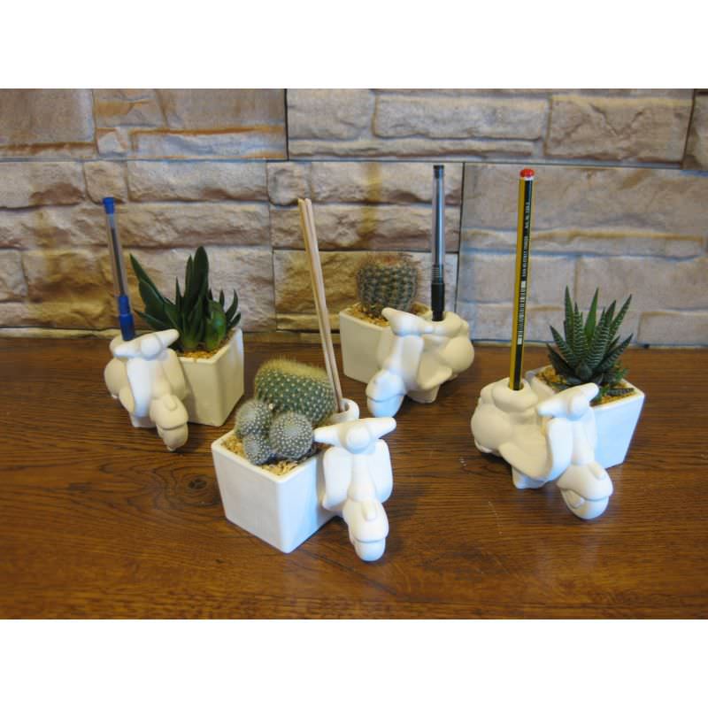 Serie vespe porta penne con piante grasse di cui quattro piccole e una grande.