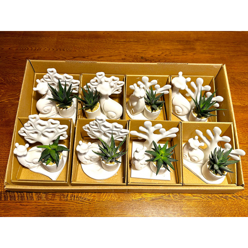 Serie da 12 angeli basi quadrate e rettangolari di grandezze diverse con pianta grassa.