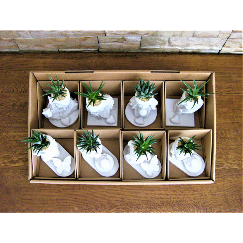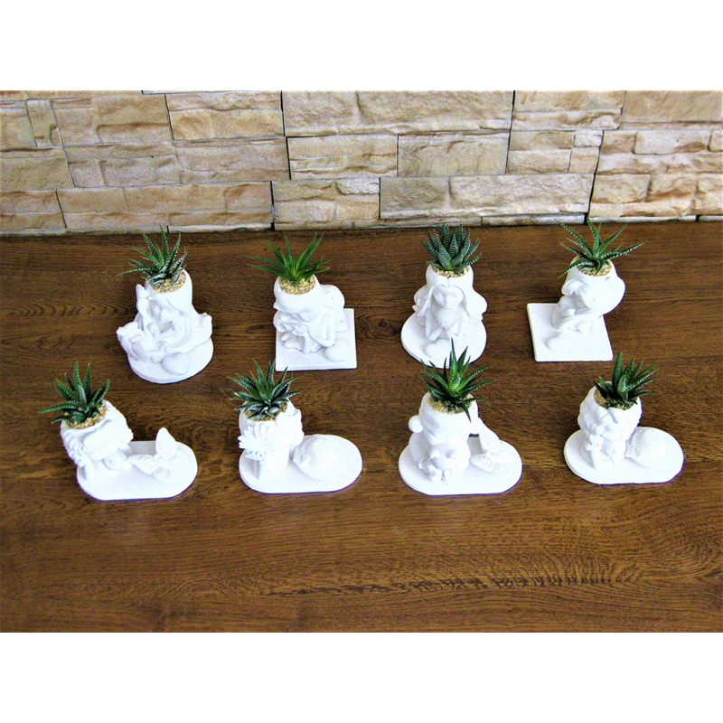 Serie da 12 angeli basi quadrate e rettangolari di grandezze diverse con pianta grassa.