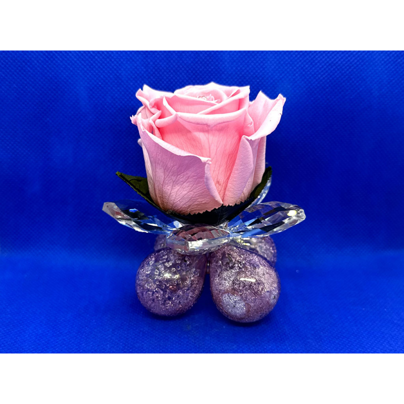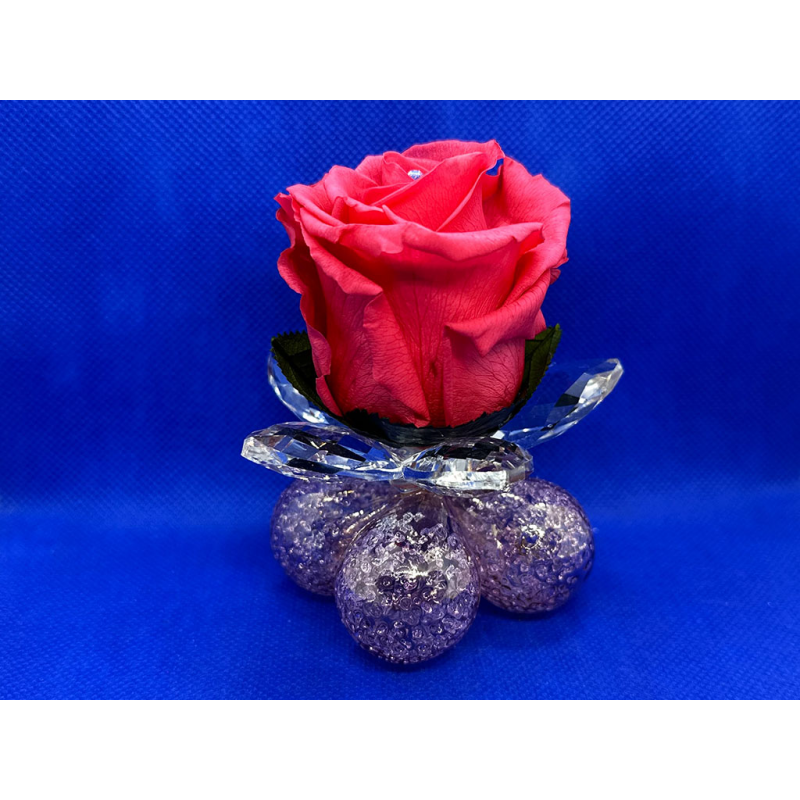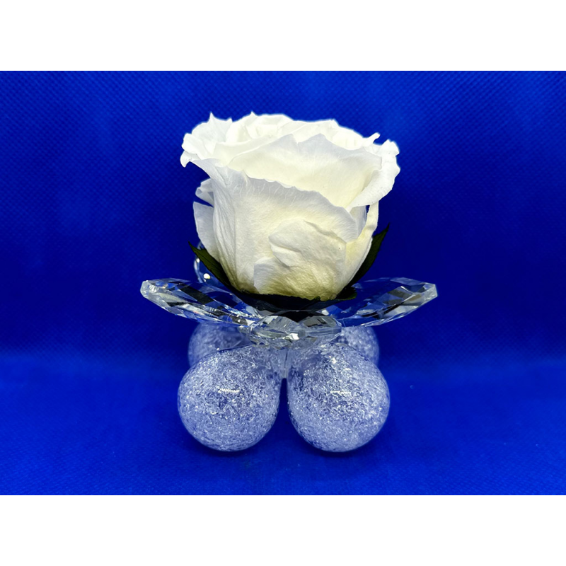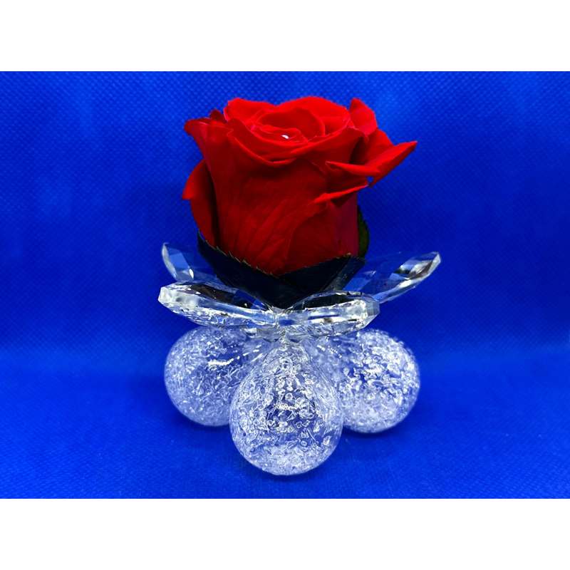 Ninfea media in cristallo con 1 rosa standard su 4 bolle in vetro soffiato.
