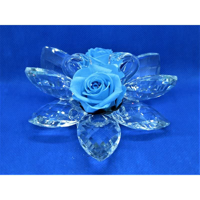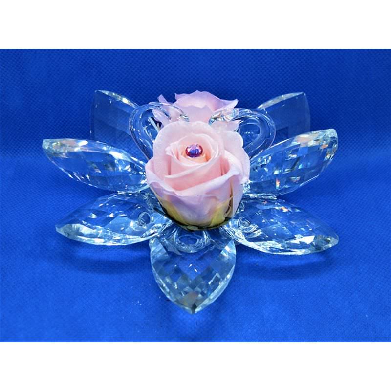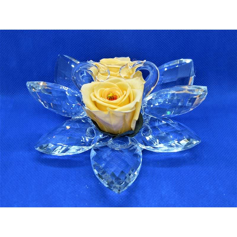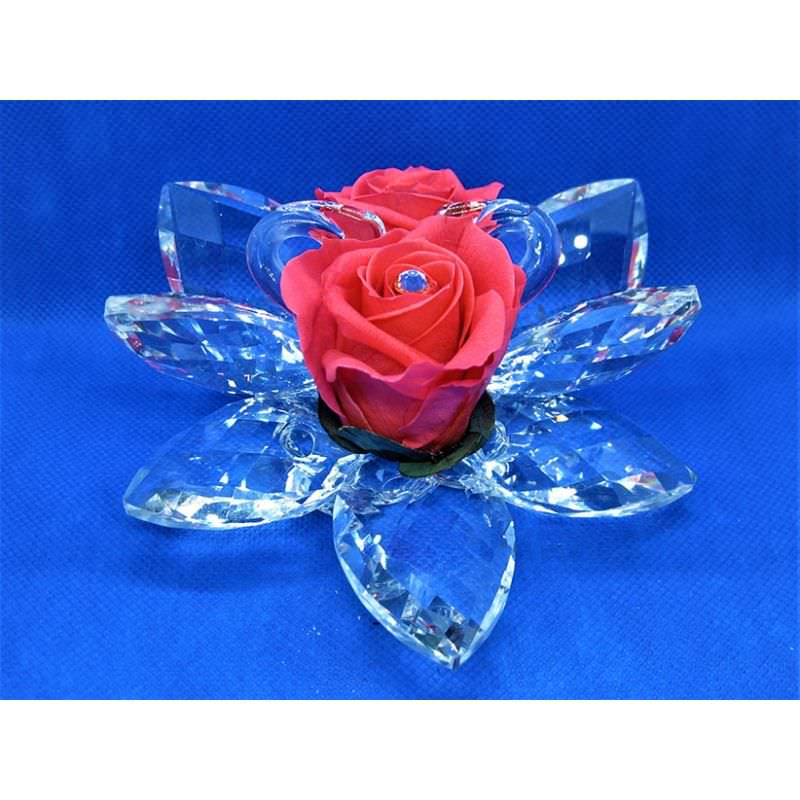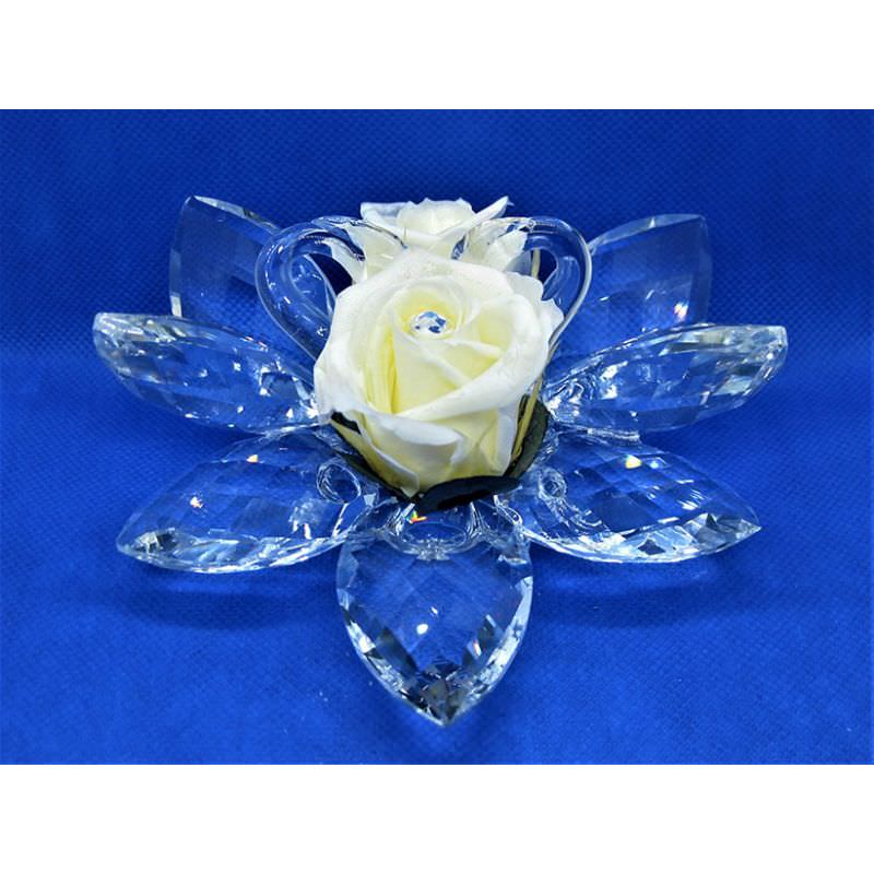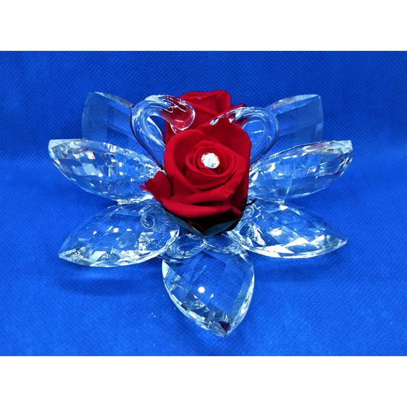 Cigni grandi in cristallo con 2 rose stabilizzate.
