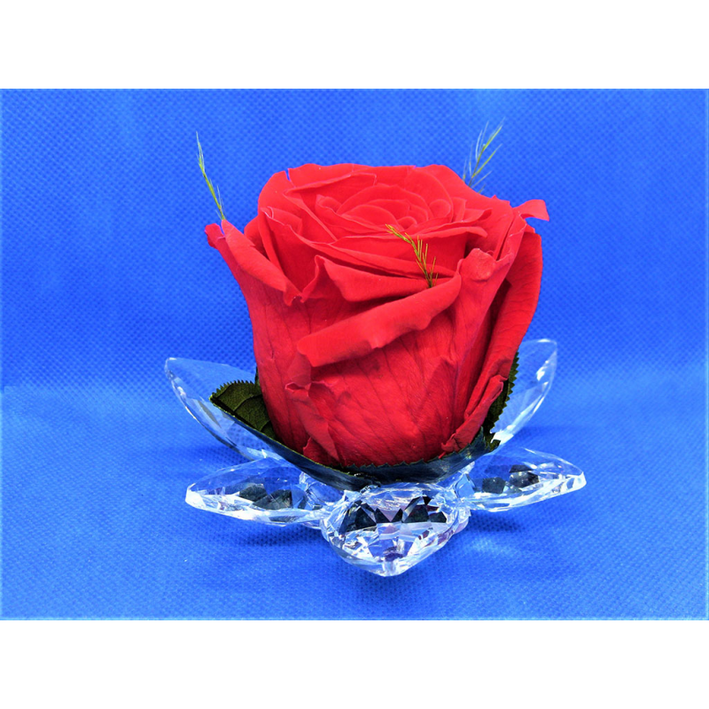 Alla base della rosa standard, foglioline e altro verde stabilizzati.