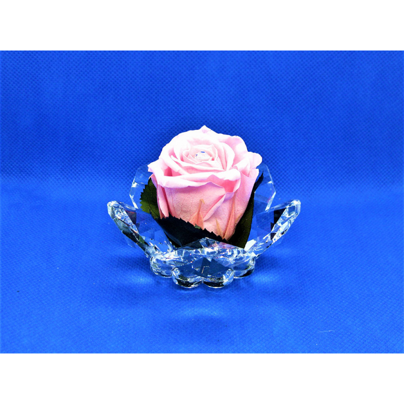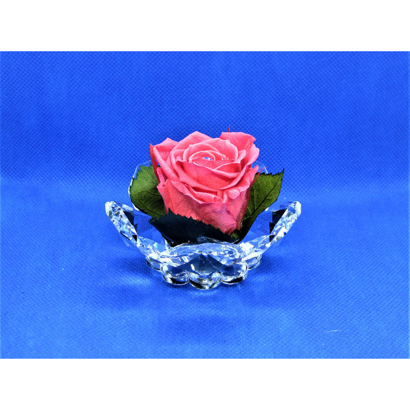 Rosa media in cristallo creata con petali ottagonali grandi con rosa media stabilizzata al centro.