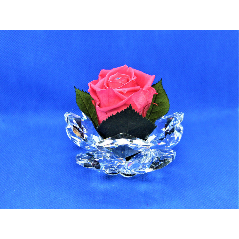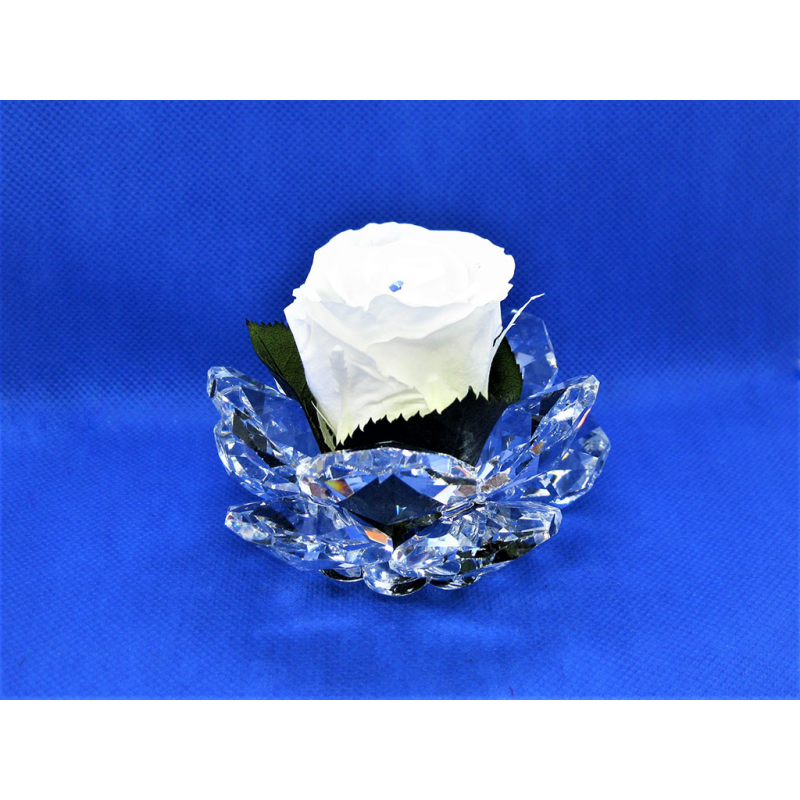 Rosa grande in cristallo creata con petali ottagonali grandi con rosa media stabilizzata al centro.