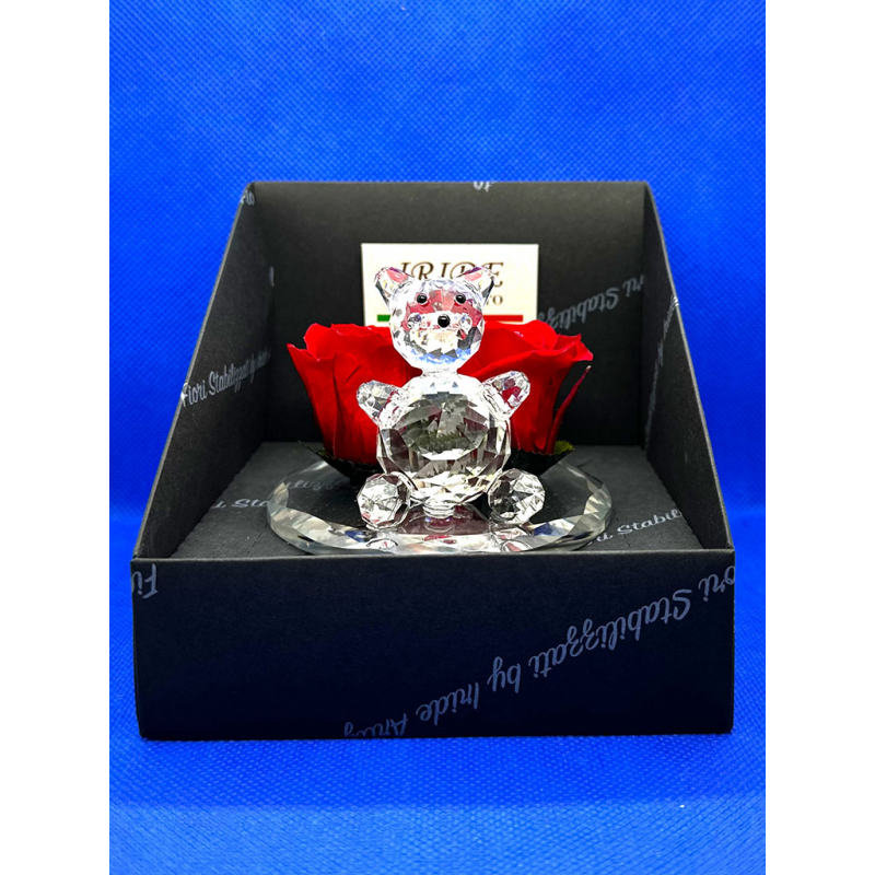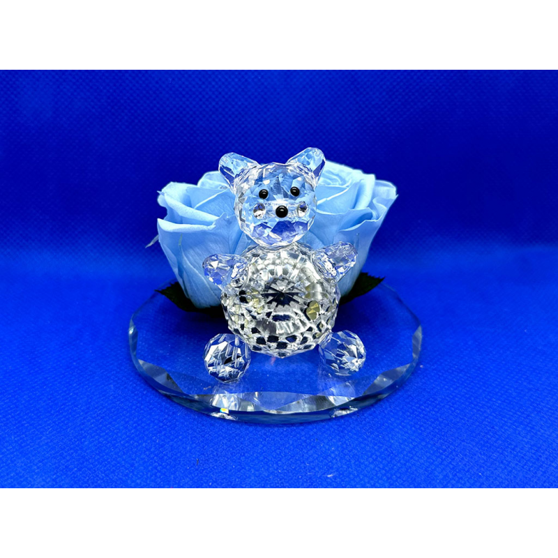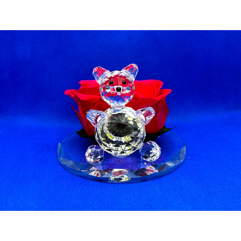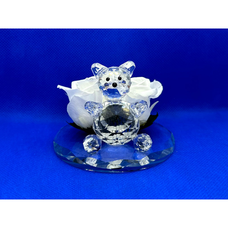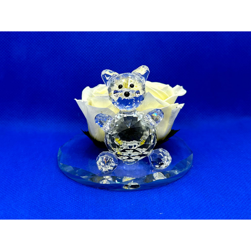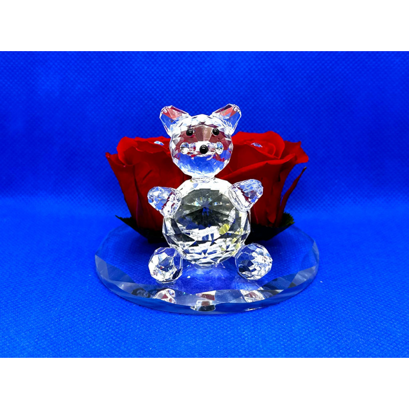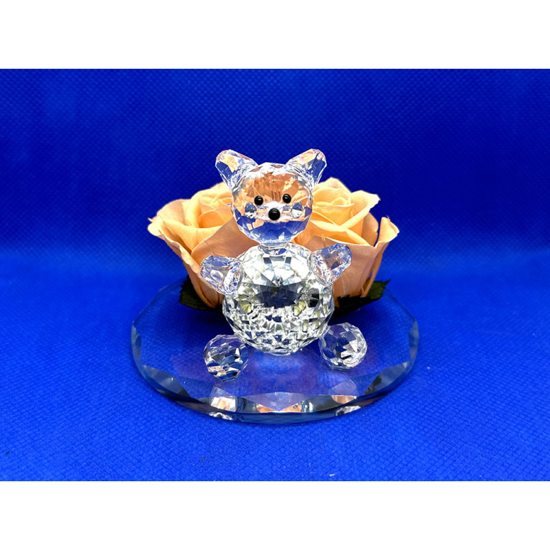 Orso in cristallo su base grande in cristallo e due rose piccole.