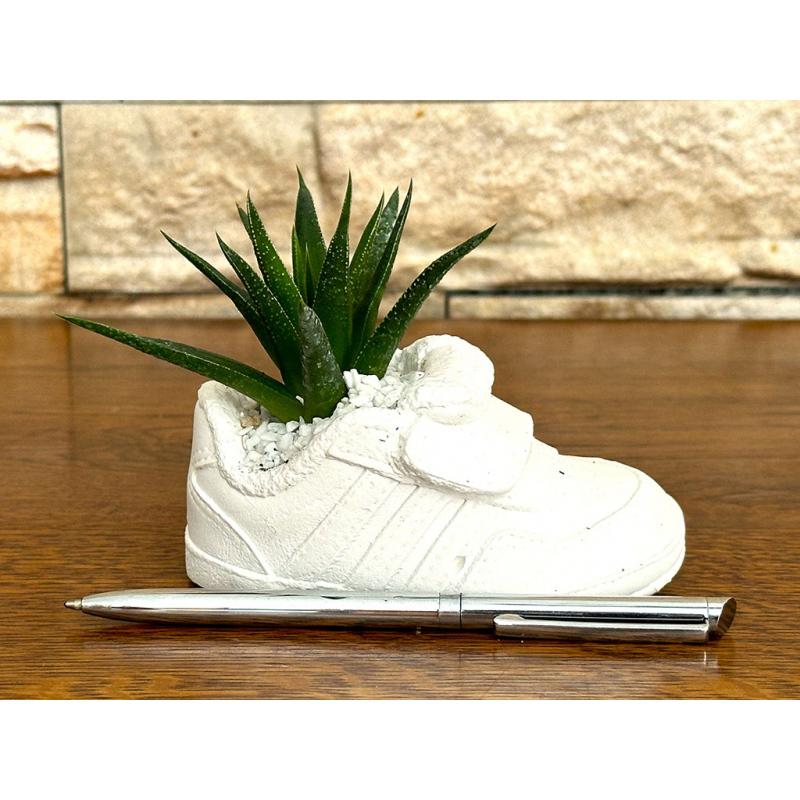 Scarpa da bambino forma adidas bianca con pianta grassa.