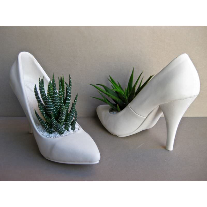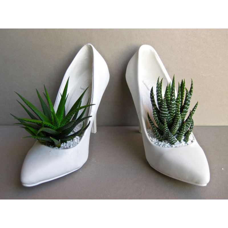 Coppia scarpa decoltè classiche tipo sposa con pianta grassa.